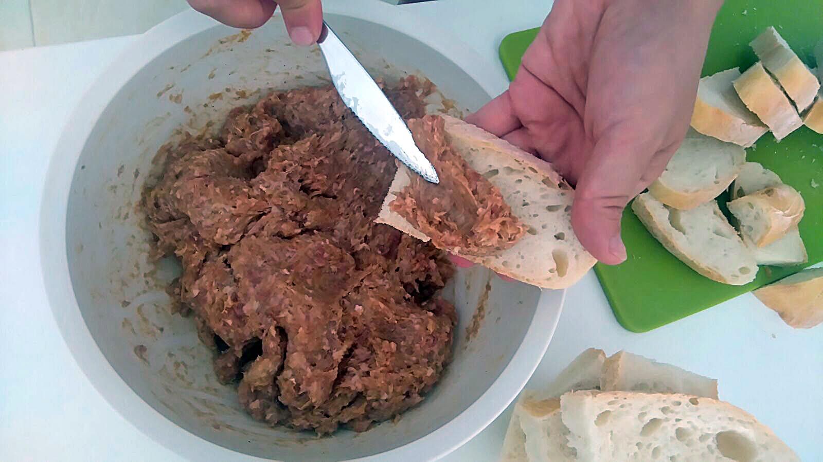 Potrebno vam je 600 grama mljevenog mesa (300 g svinjetine, 300 g junetine) kojeg povežite s jednim Kotanyi začinom za ćevape. Smjesu dobro povežite, dodajte žlicu svježeg kajmaka, kajenski papar i chilli po potrebi pa pripremite kruh. Neka bude rahli kruh (pogača, velika lepinja) kojeg narežite na kriške. Svaku temeljito namažite mljevenim mesom i ostavite u frižideru sat vremena.