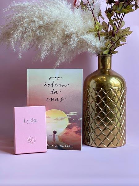 Simbolično nosi naziv „Za Nju“ a krase ga cvjetovi ruže, ljiljana, orhideje i posebnog cvijeta maćuhice koji još od 19.st prenosi poruku“nedostaješ mi” i “mislim na tebe”. Bezvremenski nakit za sve koji žele pokloniti buket vječnog cvijeća uz poruku sreće svojoj majci, ali i svim onim ženama koje volite! Komplet uključuje ogrlica s mirisnim medaljonom i gravurom po izboru i dostupan je na Lykke webshopu u limitiranom izdanju zajedno s knjigom Ovo želim da znaš, te u Lykke Gift Shopu.