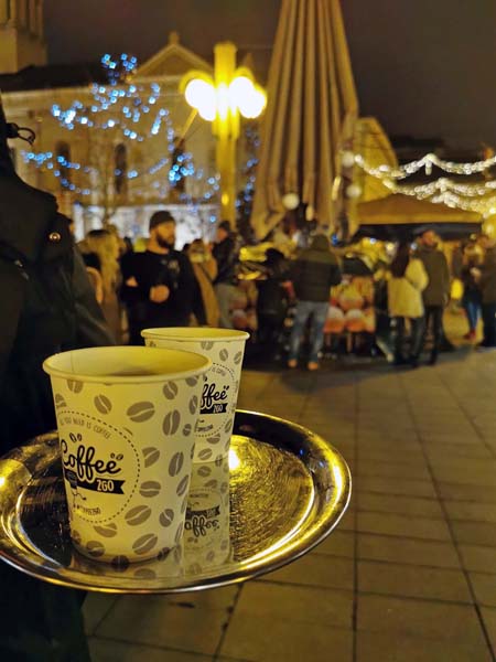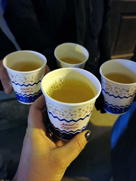 Sve nekako počinje na Cvjetnom trgu koji je unatrag nekoliko godina postao zagrebačka špica. Na njoj se i sada okuplja ekipa – žene u trendy bundicama i frajeri u kaputima držeći u rukama papirnate čaše i pijuckajući kuhano vino. Njega se kupuje na nekoliko lokacija na samom Trgu – u kultnoj Boniti, u slastičarnici Millenium i u Vip caffeu. Probali smo sva tri i ako volite tradicionalno bijelo kuhano vino ono je najbolje u Boniti, dok u VIP caffeu je odličan kuhani punč i rose. Vlasnici ovih lokala su se pripremili za Advent i ‘vruće čaše’ koje prodaju kvalitetnom ni malo ne zaostaju za onom ponudom na koju smo navikli- dobra kvaliteta, pristojan normativ i viša cijena ( kuhano vino na Cvjetnom je od 18 do 22 kune, ovisno gdje pijete). Kad je ‘špica’ na vino ćete čekati 15 tak minuta stojeći u redu. Ako vam se ne da čekati, na još jednom mjestu u blizini možete popiti kuhano vino. U Teslinoj ulici nalazi se restoran Tri ribice koji je u Adventu pretvoren u take away punkt. Njihovo kuhano vino je ujedno i naj jeftinije na Adventu – košta 15 kuna za normativ od 2 dcl. Naša je zamjerka premalo začina u kuhanom vinu.