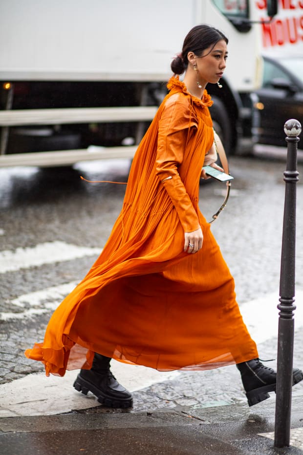 - Nosite li monokromatski narančastu (jedna boja u cijelom outfitu) pazite da svi elementi total looka imaju isti intenzitet boje kako bi se stvorila jednoličnost. Ne možete li to postići neka temeljni odjevni predmeti budu iste nijanse, a ono što upotpunjuje total look u svijetloj ili tamnijoj boji.