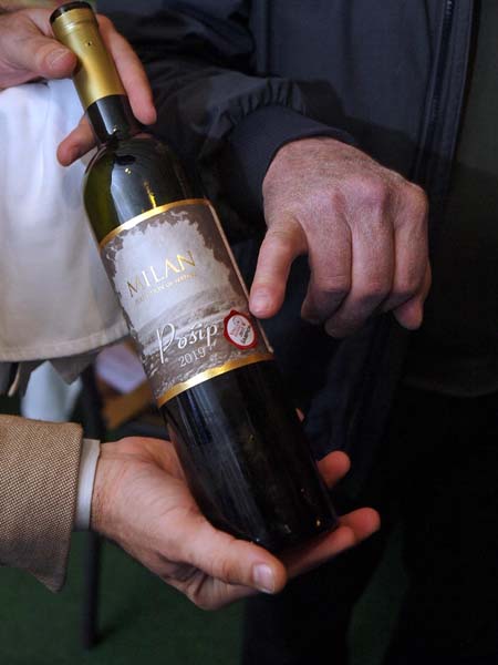 Naposljetku, došao je red na degustaciju čuvenog pošipa Ivice Milana. Iako je pošip korčulanska autohtona sorta, ona je u Ivičinim vinogradima naišla na „dobru zemlju i vridnu, pažljivu ruku koja će je njegovati tako da iznjedri sve ono najbolje od sebe“. Pažljivo odabrane i s punim povjerenjem dobivene sadnice pošipa s Korčule su u Kaštela stigle doslovno u naramku i zaživjele svoj novi život pod obroncima Kozjaka, gdje je Ivica izmislio za njih posebni „pergola uzgoj“ koji podiže lozje visoko, i omogućuje svakom grozdu optimalan omjer hlada i sunca. Time je postignuta idealna insolacija uz kontrolu zrenja, sladora i budućeg alkohola. Rezultati govore sami za sebe i osjećaju se već na prvi gutljaj. Najveći dokaz kvaliteta, a i svjetske slave Pošipa Milan, je podatak da je upravo ovo vino prije dvije godine posluženo na rođendanu britanske kraljice Elizabete u organizaciji Rolls-Royce kluba.