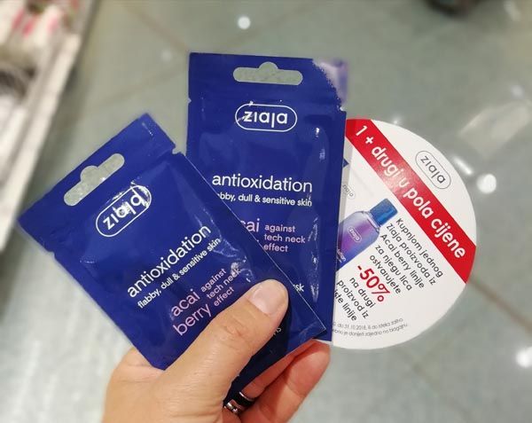 Ziaja Acai berry antioksidativna maska za lice i vrat protiv „tech neck“ učinka. Prirodni aktivni sastojci poput acai bobica, hijaluronske kiseline i beta-glukana dubinski hidratiziraju, regeneriraju i zaglađuju kožu. Učinkovito umiruje crvenilo i iritacije, a idealna je za intenzivnu njegu i regeneraciju kože lica i vrata tijekom noći. Poboljšava čvrstoću kože, pruža joj mekoću te zdrav i blistav izgled. Bogata visokim udjelom prirodnih aktivnih sastojaka poput acai bobica, hijaluronskom kiselinom i beta-glukanom, aktivno hidratizira i zaglađuje kožu. Obnavlja i jača epidermu kože, umiruje crvenilo i iritacije, a idealna je za obnavljanje kože noću i savršena za njegu vrata. Poboljšava čvrstoću kože i njeno stanje općenito, uz umirujući učinak i dugotrajnu hidrataciju.