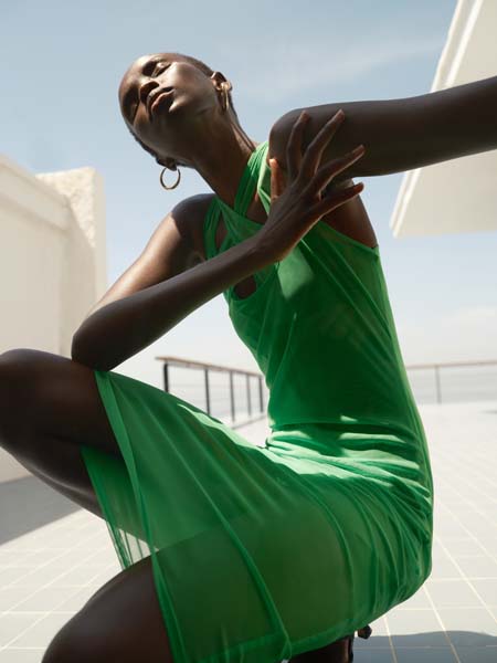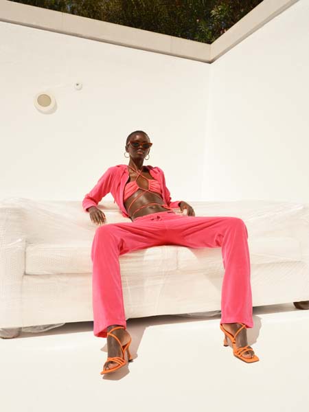 Pažljivo postavljeni prorezi naglašavaju žensku siluetu a odjevni komadi dizajnirani su u efektnim i razigranim slojevima. Kolekcija se sastoji od maxi haljina s karakterističnim naborima uz liniju vrata i otvorenih leđa, mrežastih midi haljina s dvostrukim naramenicama, mini suknji na preklop i topova različitih dužina. Ne nedostaje niti baršunastih trenirki u ružičastim i kobaltno plavim nijansama. Kolekcija je upotpunjena i nezaobilaznim kupaćim kostimima, od bikinija na vezanje oko struka i bokova do asimetričnih i jednodijelnih verzija s profinjenim izrezima.