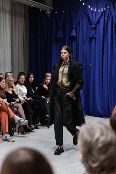 Sama ideja i tema kolekcije skrivena je u nazivu artisanal kao osobna posveta dizajnera zanatu. Pažljiv odabir materijala, precizno uzimanje mjera, ručna dorada i minuciozni detalji koji se razumiju tek kad se komad uzme u ruke. Drugi temelj je nosivost – istinski prêt-à-porter za realan život – s mnogo suvremenih, funkcionalnih komada poput sakoa, kaputa, odijela i jakni koji nose elemente street stylea filtrirane kroz sofisticiranu prizmu brenda. Kolekcija broji 30 slojevitih, multifunkcionalnih lookova osmišljenih za različite prilike, s naglaskom na lako kombiniranje i dugotrajnu upotrebljivost.