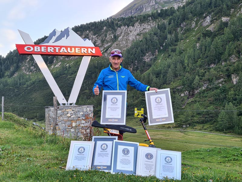 ”Čak sam sedam puta uvršten u GUINNESSA-a za svjetske rekorde na snowbikeu/skibobu, a posljednje priznanje prošle godine dodijelio mi je RID (Institut Rekorda Njemačke) za skijaški turizam i to za najveći broj spustova na stazi Zehnerkar u zimskoj sezoni (200 puta) – kaže mi Hermann zaljubljenik u ekstremne discipline na snijegu s biciklom. Uz posljednja priznanja spomenuo je i to kako je sve počelo 2007. kad je 12 sati hodao gore-dolje na padini kod Zehnerkara u Obertauernu na 107.000 stopa zajedno s Haraldom Brenterom, nakon 4 mjeseca priprema. Ne tako davne 2013 oborio je rekord u najvećoj vertikalnoj udaljenosti u jednom satu – 3.066 m u skijalištu Amade u Salzburg, 2015. za vožnju unatrag jedan km za 2 minute i 35 sekundi na plavoj stazi Schaidberg u Obertauernu, 2016 je uslijedilo fenomenalno okretanje od 360 stupnjeva u jednoj minuti – 24 puta u Kaprunu/Salzburgu. Zanimljivi rekordi, ali i čovjek koji je sjedio preko puta mene probudili su moju znatiželju, a pitanja su me dovela do njegove priče.