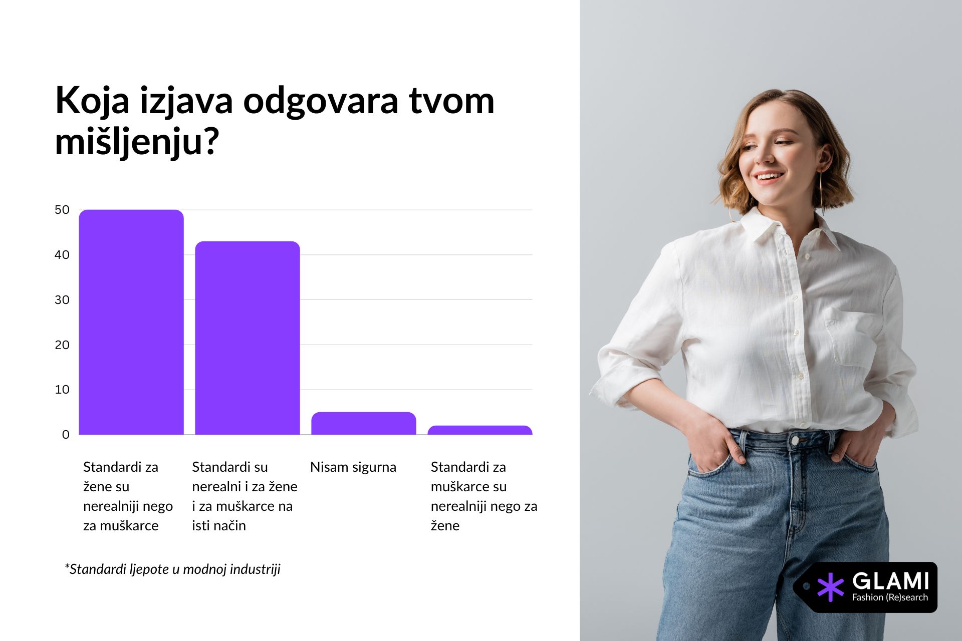 S pozitivne strane, čini se da su nedavne kampanje poznatih svjetskih ‘’inclusive’’ brendova zamijećene budući da nešto više od polovine GLAMI-jevih ispitanika smatra da brendovi nude modele različitih veličina i oblika. No je li uključivost vodeći čimbenik za odluku o kupnji? Očigledno nije. Ljudi se uvijek vraćaju osnovama i traže ono što najbolje odgovara njima i njihovim potrebama. Na pitanje “Jeste li ikada prilikom kupnje modnih artikala dali prednost robnim markama koje promiču uključivost svih oblika i veličina tijela?” nešto manje od polovice ispitanika (43%žena i 44% muškaraca) odgovorila je “Ne, to nije imalo značajnu ulogu u mom donošenju odluka, samo tražim odjevni predmet koji mi pristaje”.