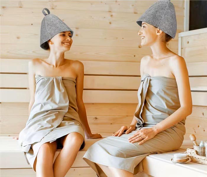 Zamislite da imate gustu kosu koja se zagrijava i suši u visokoj temperaturi saune – potrebno ju je zaštititi. No, znate li da postoje i posebne kape za saunu dizajnirane za osobe koje nemaju kosu? Ove kape napravljene su od laganih, toplinskih izolacijskih materijala poput filca ili vune, koji štite glavu od prevelike topline i istovremeno održavaju optimalnu temperaturu. Tako sprječavaju neugodu i pregrijavanje, pružajući ugodan boravak u sauni svima, bez obzira na tip kose ili ako nemate kose.