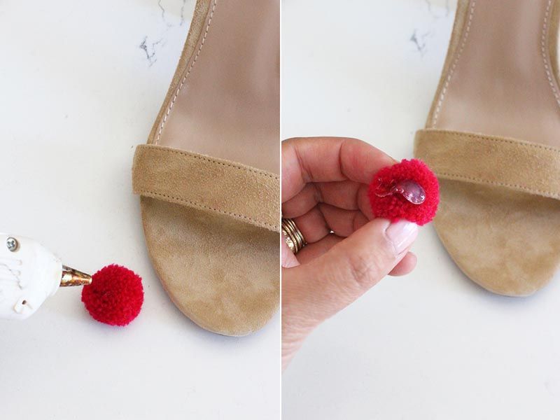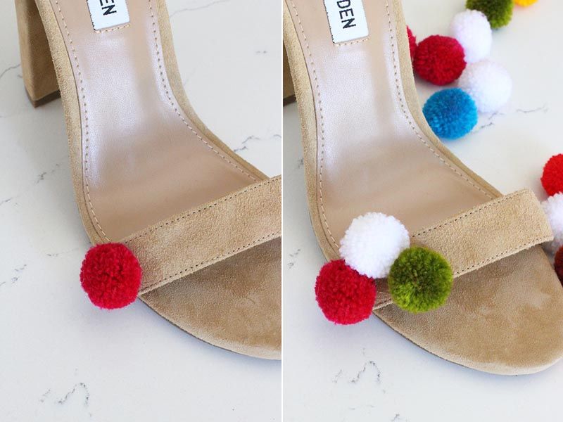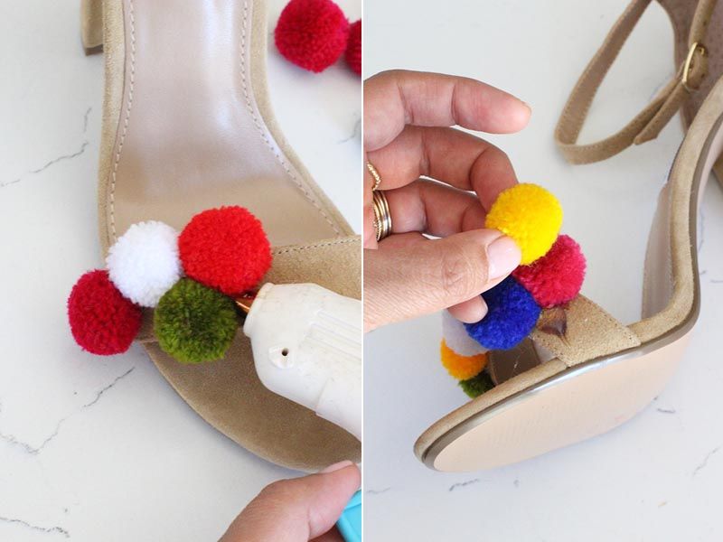 • Pospite pompone u raznim bojama po gornjem dijelu štikli. Najbolje ih je zalijepiti univerzalnim ljepilom