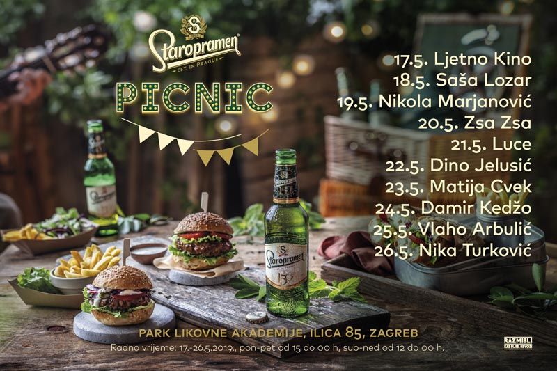 Već dobro poznata tradicija Staropramen piknika poznata je po ugodnom druženju, koje poziva na opuštanje i uživanje u hrani, pivu, glazbi i sjajnoj atmosferi koja garantira trenutke za pamćenje. Savršeno mjesto za bijeg nakon posla i obaveza i druženje s prijateljima nudi originalnu zabavu u travi uz dekice, pletene piknik košare, svijeće, lampice i klupice posebno dizajnirane za najduži i najbolji piknik u gradu. Ove će godine sve obožavatelje posebno obradovati vijest da piknik traje čak 10 dana uzastopno od 17. do 26. svibnja, radnim danom od 15 sati do ponoći, dok vikendima druženje počinje već u podne.