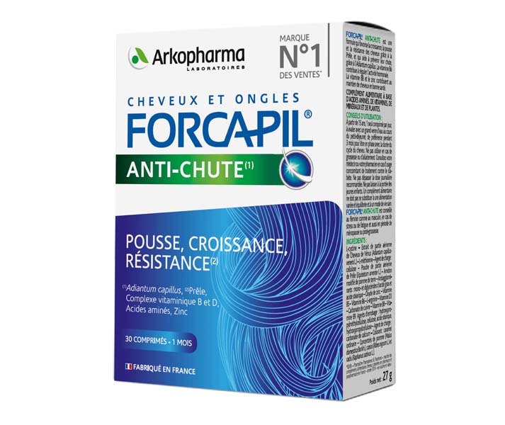 Forcapil® Anti-chute namijenjen je onima koji se suočavaju s gubitkom kose uslijed stresa, umora, hormonalnih promjena ili drugih čimbenika. Osigurava trostruko djelovanje: rast, snagu i otpornost kose.