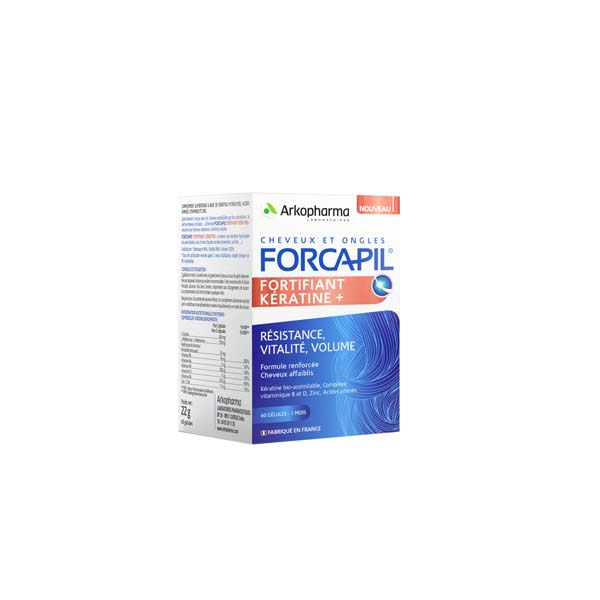 Forcapil® Kératine+ je posebno dizajniran za oštećenu kosu kako bi joj vratio otpornost, vitalnost i volumen. Znanstvenici iz laboratorija Arkopharma razvili su jedinstvenu i inovativnu formulu koja kombinira sastojke s dokazanim djelovanjem. Posebnost proizvoda je hidrolizirani bioraspoloživi keratin, koji je 97% identičan keratinu koji se nalazi u našem tijelu.