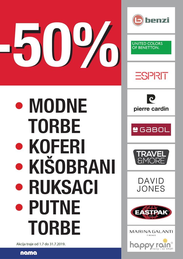 Na odjelu s modnim detaljima potražite putni program (kofere, torbe) ali i modne detalje (šešire primjerice) na sniženju do 50%.