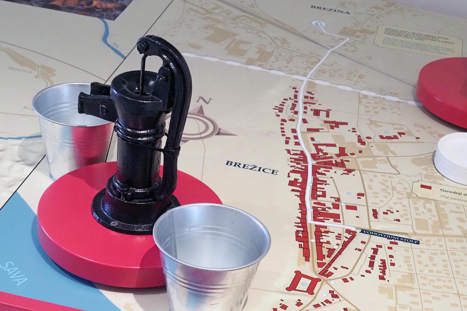 Voda je jedan od simbola Brežica. Spomenuli smo kako se na ovom mjestu Krka ulijeva u Savu, kako ovaj gradić obiluje termalnim izvorima vode na kojima su bazeni i terme, no zbog vode je otvoren još jedan zanimljiv muzej. Primijetit ćete ga već na samom ulasku u grad pitajući se koju priču nosi ružičasti toranj nedaleko muzeja. Istražite ga tako da između Posavskog muzeja prođete, po mišljenju mnogih, jednom od najljepših ulica u Brežicama u kojoj ćete pronaći i klupu za zaljubljene. Riječ je o nekadašnjoj obrtničkoj ulici, danas retro uličici na čijem je početku klupa za zaljubljene. Sjednete li na nju s drugom polovicom fotografija je impozantna – iza zaljubljenog para nalazit će se vizura dvorca.