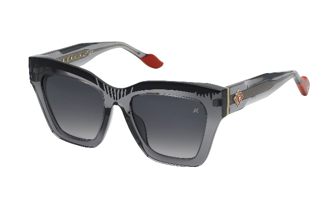 Sunčane naočale od acetata sa širokim, modernim prednjim dijelom. Transparentna krilca otkrivaju jezgru i karakterističan natpis riječi REBEL vidljiv s unutrašnje strane. Krajevi krilaca simboliziraju pravu posebnost stila: na lijevoj strani ikonični Yalein monogramski logo, a na desnoj Frida Kahlo kist za slikanje. Model je dostupan u tri verzije: osnovnoj s cvjetnim uzorkom na jezgri, ‘V’ verziji s vanjskim cvijetom i ‘W’ verziji s cvijetom na krilcu, obogaćene ikoničnim simbolom spojenih obrva na prednjem dijelu.