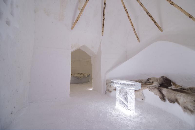 Sakriven među brojnim jezerima i brdima sjeverne Švedske, više od 100 milja sjeverno od Arktičkog kruga, objekt Icehotel iznova se gradi svake zime od snijega i leda s obližnje rijeke Torne. S temperaturama između -5 i -8°C, svaka je soba posebno uređena i sadrži namještaj koji su umjetnici iz cijelog svijeta ručno izrađivali od leda. Nakon odmora u termalnim vrećama za spavanje s prekrivačima od kože sobova, gosti mogu započeti svoj dan bogatim doručkom te posjetom sauni, hidromasažnoj kadi na drveni ogrjev ili ledenoj kupki. Područje oko Jukkasjärvija popularno je za zimske aktivnosti na otvorenom, poput vožnje psećih saonica, izleta na saonicama koje vuku sobovi i obilazaka na motornim sanjkama.