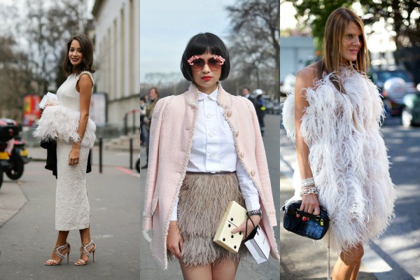 Dva su trenda nošenja perja i odjeće. Prvi je kontrast perje – tkanina, a drugi je podizanje naoko jednostavnog komada odjeće detaljem od perja. I jedna i druga kombinacija su šik uz napomenu – kontrast je odličan alat za optičko sužavanje tijela, dok je monokromatski način odličan alat za pojačavanje volumena (kod jako mršavih i vitkih žena).