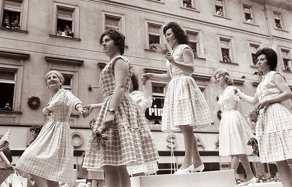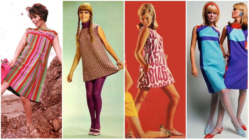 Koji su krojevi i spojevi obilježili modne 60-e? A kroj, tregeršos, kratke široke minice, visoke čizme širih sara, zaobljeni vrh cipela i blok potpetica, uzorci, kontrastno nošenje boja, veliki gumbi na odjeći, a u kosi marame, rajfovi i šeširi manjih oboda.