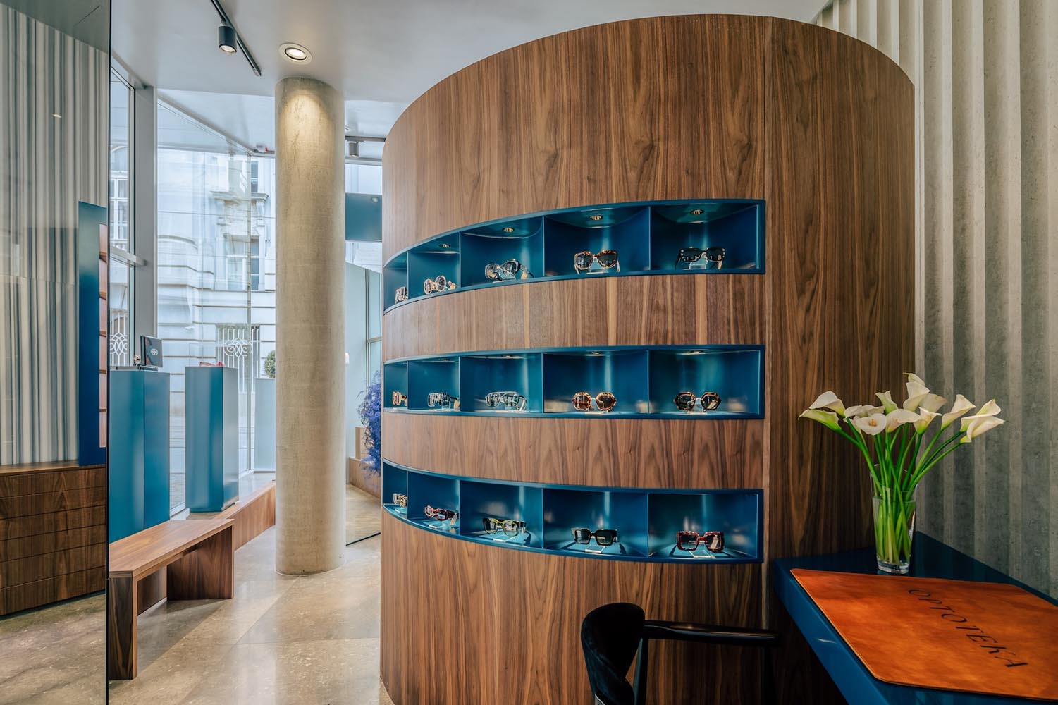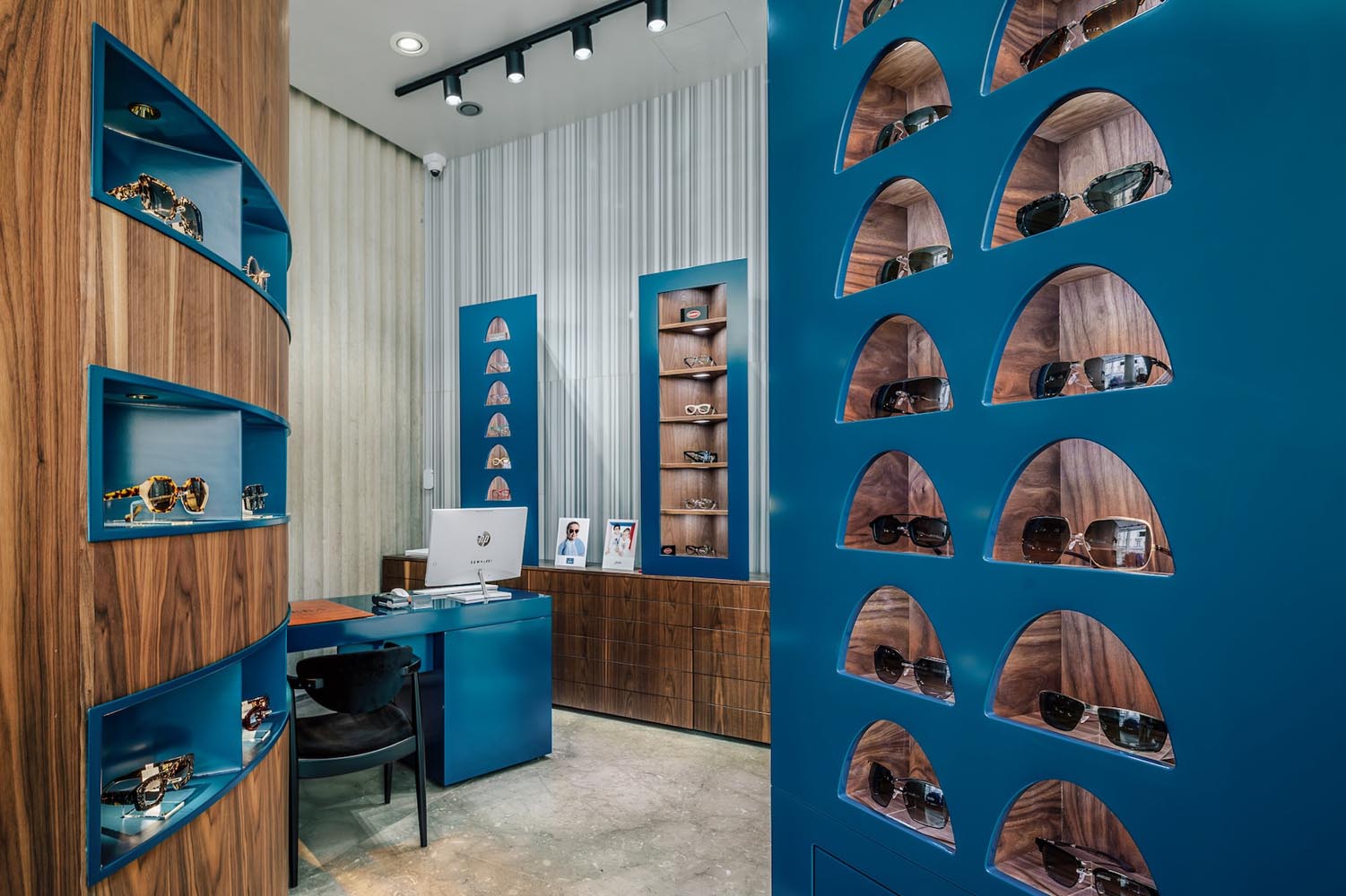 U fokusu dizajna interijera optike kombinacija je drveta, betona, stakla i petrolej boje koja sve povezuje u ugodu i estetski privlačnu cjelinu. Tu se nalaze i izolirane pozicije s istaknutim proizvodima za bolju preglednost dijela ponude. Uz personalizirani pristup te radi najboljeg mogućeg iskustva kupovine, to i ostatak ponude svatko može slobodno pogledati i isprobati bez ometanja.