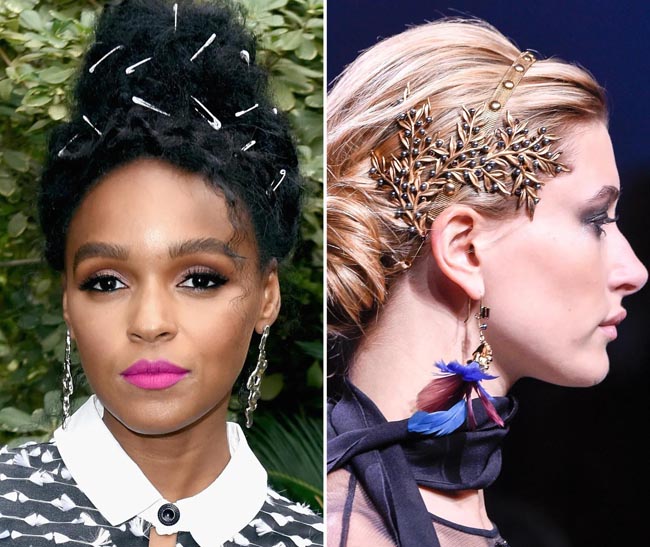 Modne stilizacije u obliku neobično počešljanih šiški (punk stil), veliko predimenzionirano cvijeće koje otkriva ramena i leđa, metalni ukrasi koji vise uz stroge ravne repove samo su neki ukrasi na glavi koji će dominirati posebnim prigodama.