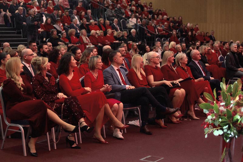 Javnozdravstvena kampanja Dan crvenih haljina završila je svečanim obilježavanjem u velikoj dvorani Sveučilišta u Zagrebu koja je bila ispunjena do zadnjeg mjesta. Pozdravnim riječima gostima su se obratili predsjednica Hrvatskog neurološkog društva prof. dr. sc. Zdravka Poljaković Skurić, dopredsjednik Hrvatskog liječničkog zbora doc. dr. sc. Tomislav Božek, rektor Sveučilišta u Zagrebu prof. dr. sc. Stjepan Lakušić, izaslanica gradonačelnika Tomislava Tomaševića, pročelnica Gradskog ureda za socijalnu zaštitu, zdravstvo, branitelje i osobe s invaliditetom dr. sc. Lora Vidović, izaslanica ministrice zdravstva doc. dr. sc. Marija Bubaš te izaslanica predsjednika Zorana Milanovića, savjetnica za odgoj i obrazovanje, gospođa Jadranka Žarković.