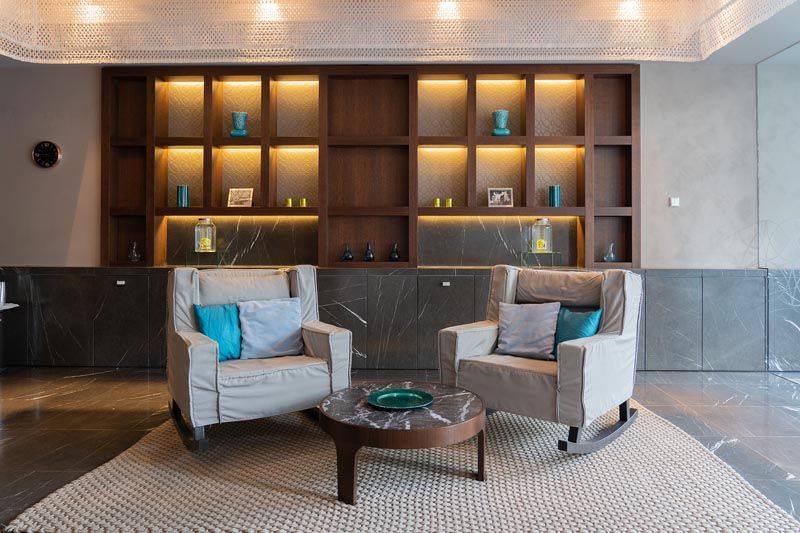 Elemente unutrašnjeg uređenja karakteriziraju čiste linije i minimalističke forme. Dominantne boje su bež i tamno smeđa, dodatno obogaćene zlatnim naglascima koji hotelu daju dozu luksuza. Spoj elegantne arhitekture iz 16. stoljeća, elementi zlata i mramora i najmodernija tehnologija! Svjetlo ćete ugasiti laganim dodirom ekrana diskretno smještenog u ladici pokraj kreveta, a TV ugrađen u ogledalo gledati i u kupaoni dok uživati u ogromnoj kadi u mramoru.