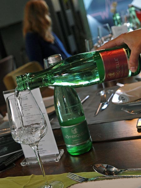 U pauzi su neki zapalili cigaretu ili se osvježili Römerquelle vodom kako bi lakše izdržali preostala dva slijeda. Kratko zatišje čaša i žlica iskoristio je Karlo Kramar, komercijalni direktor Podruma Štrigova, kako bi prisutne upoznao s posebnostima ovog najvećeg proizvođača vina u Međimurskoj županiji.