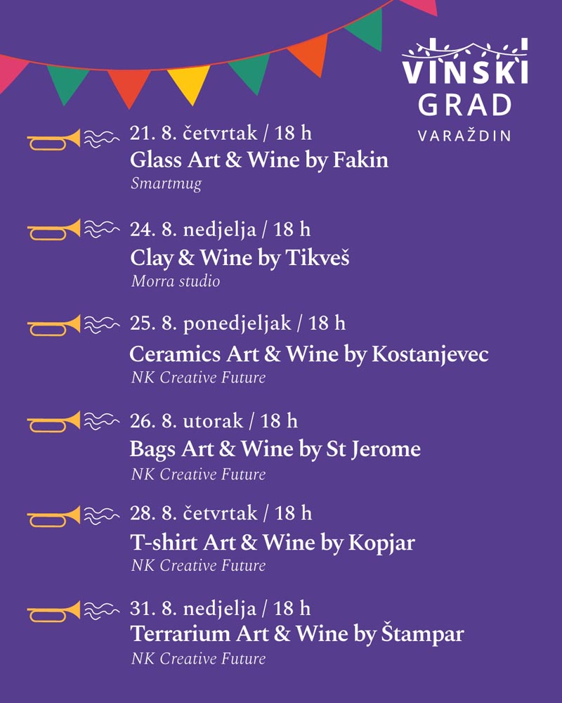 U svom programu organizatori Vinskog grada su i ove godine pripremili program kreativnih radionica koje će dodatno upotpuniti uživanje, a prekrasan ambijent Starog grada bit će sjajna inspiracija svim kreativcima. Ulaznice za radionice dostupne su online.