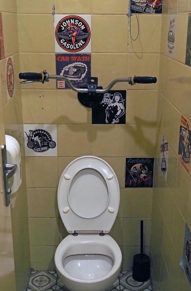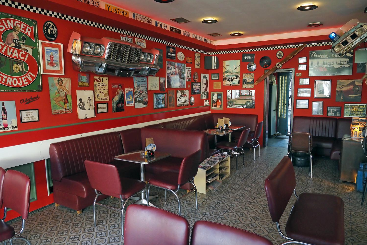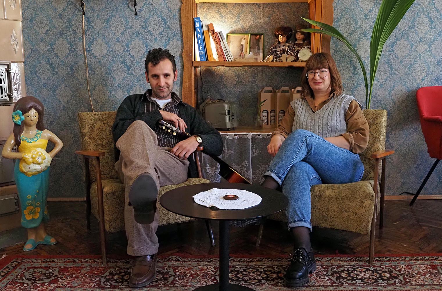 “Prvi dio Hang Loosa je donedavno izgledao kao klasični diner 50-ih (crno bijele pločice, crveni separei i klupe s inox stolovima) pomiješan s garažnim stilom (stolovi od motora VW bube, gumama, hrpa tablica i starih jugoslavenskih znakova o oprezu na radu i slično), ali smo nedavno malo prigušili boje i osvježili prostor novim ali retro pločicama. Sada je izgledom miš – maš 40-ih i 50-ih i jugoslavenskih 80-ih. Drugi dio, koji smo nedavno otvorili, je klasičan stil 60-ih i bakine kuće iz naših 80-ih, a veliko Dvorište iza kafića je šarenilo pod zastavicama, krošnjama trešnje i oraha s raznim zakutcima i podestima na stepenicama. Tako se na primjer dio Dvorišta koji čini trijem stare kuće se zove ‘Kod Strine’ i to je najbolje mjesto u Dvorištu, a jedan dio pod nadstrešnicom se zove ‘Kod bake Ruže’ kojeg naravno čini interijer iz bakine kuće” – kaže nam ovaj zanimljivi bračni par. Novootvoreni dio Hang Loosea je osmišljen kao dnevni boravak nečije bake. Jako ugodno, toplo i umirujuće. Jedina nova stvar u prostoriji su tapete i zastori, a stolice i fotelje su Ana i Matija godinama skupljali po buvljacima. Veliki crveni tepih i najveća slika ulja na platnu ‘Anđeli i Djeva’ su iz bakine kuće i to mi je najdraže jer su dio Aninog djetinjstva. Naravno da imaju i Vilerova 4 godišnja doba, a u ostale okvire su ubacili uspomene s prošlih festivala. Tu je još i nekoliko biljaka koje lijepo ukrašavaju prostor, stari gramofon Nikola Tesla, te stolica za ljuljanje uz koju možete pročitati i neku knjigu s polica.