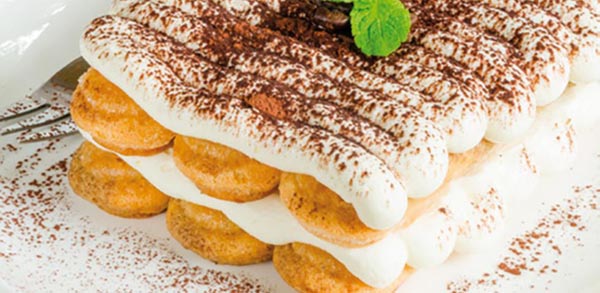 Pomiješajte cimet, toplu vodu i rum. Piškote kratko umočite u tekućinu i složite ih u dublju posudu. Pokrijte prvi sloj keksa s polovicom smjese od jabuka, a zatim s polovicom smjese s mascarponeom. Ponovite postupak. Stavite u hladnjak na barem 3 sata, idealno preko noći. Ako želite urednije kriške tiramisua, prije posluživanja ga 30 minuta stavite u zamrzivač. Prije posluživanja, pospite vrh mješavinom kakaa i cimeta.