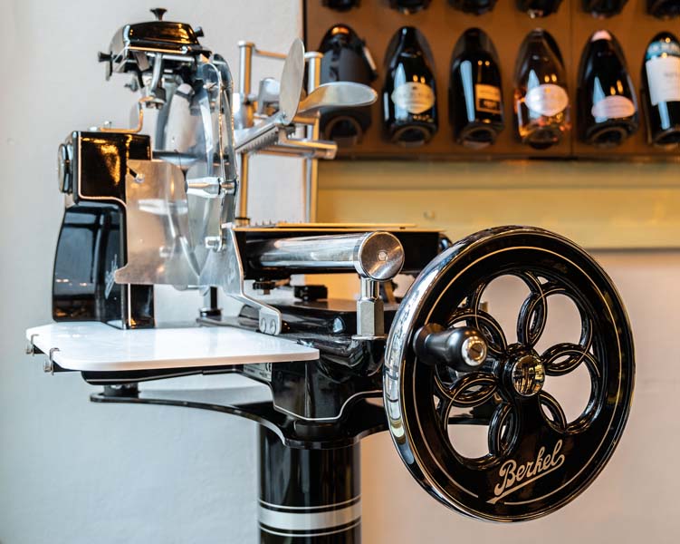 Mozaik poda odmah s ulaza daje prostornu toplinu. Nasuprot njega nalazi se biljkama osvježen strop kojim dominira 28 bakreno zlatnih lampi. Posebna su priča čuvene talijanske Elite To Be željezne police koje se protežu zidovima u obje prostorije, a na kojima je izloženo više od 500 boca najkvalitetnijih talijanskih vina koja se mogu odmah kušati.