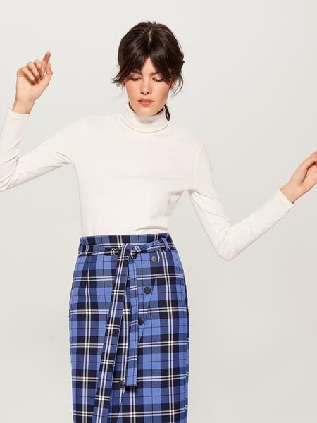 • Uske hlače duljine 7/8 idealne za sve žene koje imaju jače bokove. Pazite koji tip kariranih hlača birate! Karirani uzorak treba biti srednje velik kako optički ne bi povećao obline. Nosite li više potpetice neka vaše karirane hlače budu lagano u trapez.