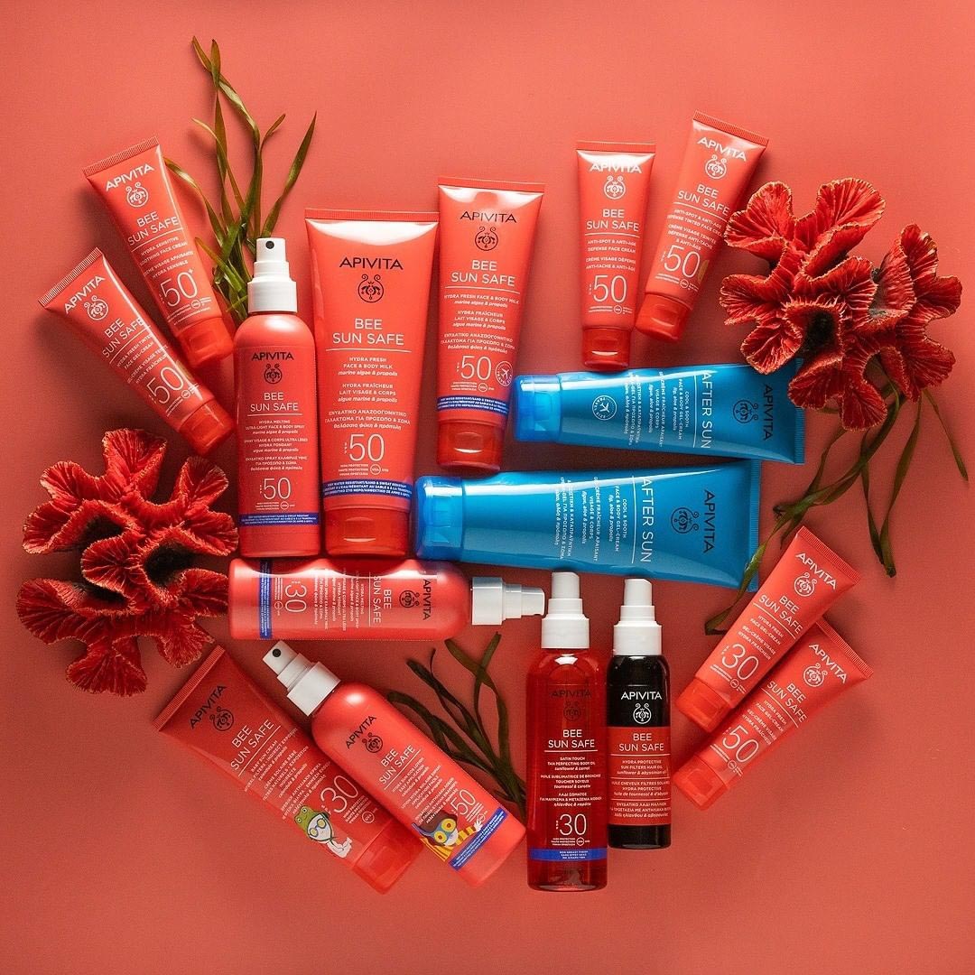 APIVITA svijet suncare proizvoda u ovim nesigurnim vremenima mjesto je sigurnosti za zdravlje kože cijele obitelji. BEE SUN SAFE linija podijeljena je u tri inovativne kategorije kako bi svakodnevni esencijalni proizvodi za lice i tijelo pružili najbolje svakom pojedincu. HYDRA FRESH gel kreme formulirane su za masnu kožu ali i muškarce. ANTI-SPOT / ANTI-AGE kreme pružaju optimalnu zaštitu od nastanka mrlja i dodatnog starenja uslijed izlaganja suncu te HYDRA SENSITIVE formulacije sa umirujućim efektom su za sve one sa osjetljivijom kožom. Dakako, sigurnost od negativnog sunčevog zračenja uz SPF50 i(li) SPF30 možete pružiti i najmlađima jer SUN KIDS losioni i kreme sa APIVITA potpisom pružaju najbolju zaštitu i najbolji omjer najprirodnijih sastojaka.