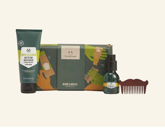 Beard & Bristle Grooming Kit – idealan poklon paket za sve bradate frajere. U ovom se pakiranju nalazi hidratantna krema od zelenog čaja i limuna, omekšavajuće ulje obogaćeno organskim djevičanskim kokosovim uljem za bradu od cedra i kadulje te češalj za bradu. Ambalaža također ima FSC certifikat i može se široko reciklirati.