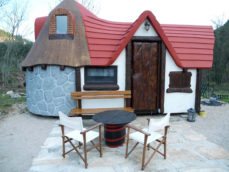 Na prekrasnom Krka Fairytale Village imanju nalaze se dva objekta – kuća koja izgleda kao gljiva, u kojoj može komotno spavati 5 osoba i bajkoviti dvorac za smještaj 4 odrasle osobe. I jedna i druga smještajna jedinica u svojoj unutrašnjosti skrivaju zasebne sanitarne čvorove, mini kuhinju i ugodne krevete.