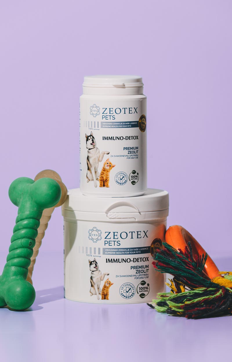 Zeotex PETS je put k zdravlju i vitalnosti vašeg kućnog ljubimca u bilo kojoj životnoj dobi je 100% prirodni dodatak prehrani. Sastoji se od ultra finih čestica aktivne tvari zeolita, detox minerala, koje služe za čišćenje organizma od svakodnevnih neprijatelja – opasnih toksina, kemikalija i štetnih tvari.