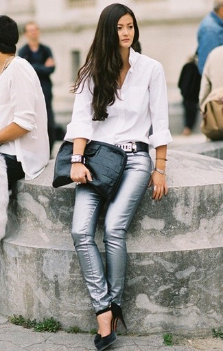 Kako zabljesnuti, a ne pretjerati? Odgovor je vrlo jednostavan – uvijek odaberite samo jedan odjevni predmet napravljen od izražajnog srebra i njega kombinirajte na neutralan način. Dobar bi primjer bilo povezivanje srebra i svih nijansi sive boje, ali i kontriranje sive s ne bojama – bijelom i crnom. Koji bi to bio jedan odjevni predmet koji bi ujedno bio i nositelj srebrnog total looka? Elegantna srebrna jakna ili sako, hlače, minica, raskošna suknja s faldama, srebrne cipele i torbica, puno nakita, čak i kaputić kad zahladi. Prilikom odabira idealnog odjevnog predmeta pazite da srebro bude na dijelu tijela kojeg želite naglasiti i staviti u fokus jer boja ovog metala je izražajna i dodatno naglašava.