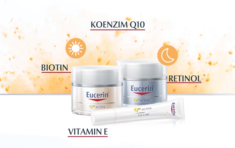Obogaćena upravo koenzimom Q10, ova linija njege pomaže ojačati stanice razinama energije čime se pospješuje regeneracija stanica i smanjuje dubina finih linija i bora. U sklopu dermatološkog ispitivanja 21 ispitanika nanosilo je Eucerin Q10 ACTIVE dnevnu kremu na kožu lica dva puta tjedno u vremenskom periodu od 4 tjedna. Glavna otkrića uključuju značajno smanjenje dubine bore i oksidativnog stresa, dok je čak 86% ispitanika potvrdilo vrlo dobru podnošljivost na svojoj osjetljivoj koži, prema procjeni dermatologa.