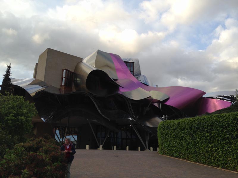 Glasoviti arhitekt Frank Gehry vinariju je “oplemenio” jedinstvenim hotelom s 51 sobom i 10 apartmana, koji se također zove Marqués de Riscal, a fasada su mu nekoliko metara široke vijugajuće i isprepletene aluminijske ploče koje svjetlucaju na suncu, a ljubičaste, zlatne i srebrne nijanse odražavaju vina proizvedena u podrum ispod. Prizor je to koji se apsolutno ne može zaboraviti. Uživali smo na večeri tamo desetljeće nakon otvaranja hotela, no hrana i smještaj su ostavili puno bolji dojam nego vina: korektna su, ali bez većih ambicija.