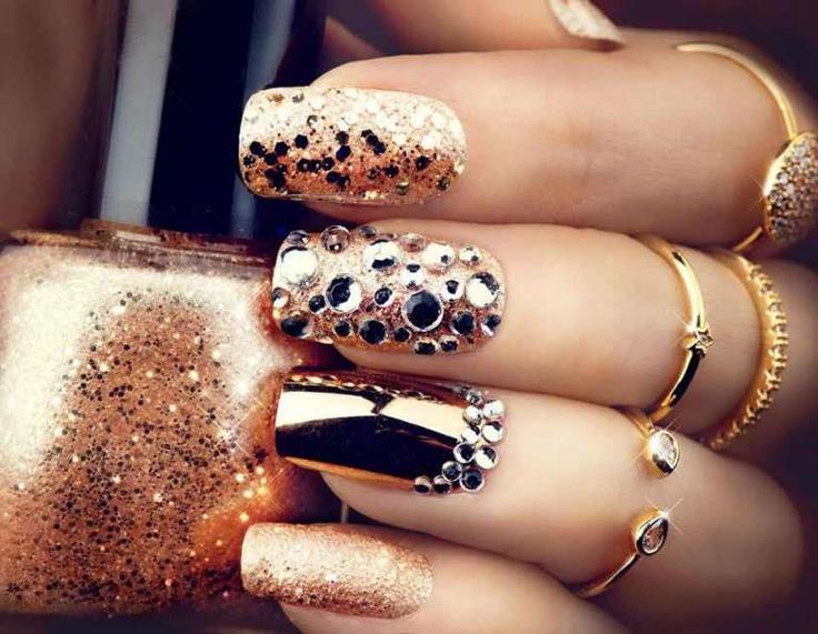 Idete li ovih dana u svoj omiljeni nail art studio kako biste pripremile ruke i nokte za kraj prosinca sigurno ste u potrazi za zanimljivim dizajnom koji podržava i Božićno i Novogodišnje vrijeme. Jedna od odličnih ideja je spoj zlata i crne, koju upotpunjuju šljokice i stilizirani cirkoni.