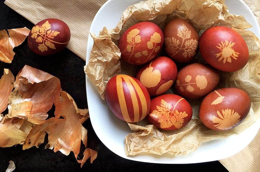 Retro način oslikavanja pisanica, ujedno je i najekološkiji način. Pisanice prije kuhanja prekrijte listovima peršina ili omiljene trave, stavite u prozirnu najlonku čarapu te kuhajte u kori luka. Ostavite u vodi da se dobro ohlade te krenite sa skidanjem čarapa. Ostat će vam prekrasne slike na lijepim smeđim pisanicama. Kako bi jaje dobilo sjaj, prijeđite preko ljuske slaninom.