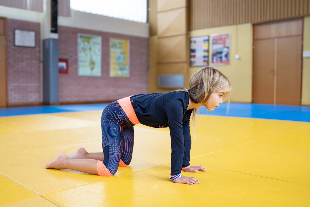 Ponovo se postavimo u poziciju upora četveronoške. Opružimo noge i blago savijemo ruke u lakovima. Tijelo nagnemo prema naprijed te rukama i nogama pritišćemo pod ispod sebe. Ispravite tijelo i zadržite pokret.