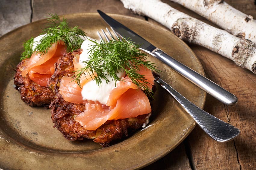 ALTERNATIVA: Yello latkes s dimljenim lososom. Priprema traje 30 minuta – a kuhanje svega 45. Hrskava izvana, meka iznutra. Palačinka od ribanog krumpira i luka prekrivena kremastim vrhnjem i zamamnim dimljenim lososom. Recept u prilogu.