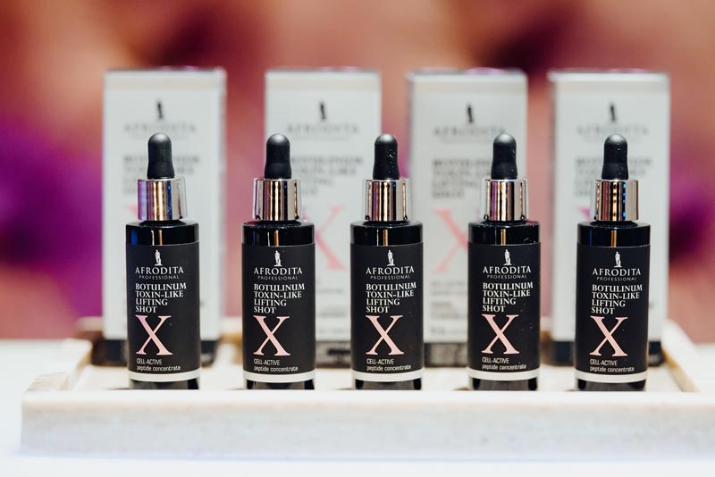 Na nebu, točnije u show restoranu Nebo u središtu Ljubljane, zasvijetlila je nova Afroditina zvijezda beauty rutine – revolucionarni proizvod Afrodita Professional X lifting shot! Ova jedinstvena kombinacija 5 vodećih peptida oponaša djelovanje BOTULINUM TOXINA, ali potpuno neinvazivno, bez injekcijske igle te potiče na prirodno starenje.